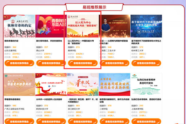 为进一步整合易班共建高校优质教学资源,打造“互联网+思政教育”一体化在线教学平台,教育部易班发展中心于8月份开展易班优质公开课征集评选活动。本次比赛设有学校自荐、网络投票及专家评审等环节,共有583部课程通过审核,66.51万名学生线上投票172.72万次,共评选出50门获奖课程(一等奖5个)。