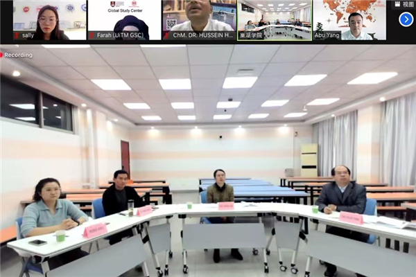 为进一步加强我校对外交流与合作,推进学校国际化办学水平,充分利用“一带一路”国家的高等教育资源,在学校领导的高度重视下和国际交流与继续教育学院的充分对接下,11月1日上午,365bet赌场手机投注_det365下载_365bet备用网学院与马来西亚玛拉工艺大学召开线上交流合作启动会,365bet赌场手机投注_det365下载_365bet备用网学院党委委员、副院长朱定秀出席了会议。玛拉工艺大学槟城分校教务副校长西蒂诺莱尼,研究生部负责人莫哈末胡赛里、联络官努阿兹兰,马来西亚玛拉工艺大学学术发展中心区域负责人西蒂法拉、联络官利亚纳等马方院校相关单位负责人,国际交流与继续教育学院负责人褚春元、副院长齐先文、外事科荣幸老师参加交流合作启动会。