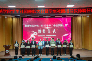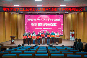 在热烈的掌声中,领导嘉宾为受表彰的学生社团颁发荣誉证书,为新聘任的指导教师颁发聘书。英语协会指导教师高洁作为指导教师代表在会上作交流发言。她表示,四年的社团指导教师工作经历让她见证了社团的向好发展和育人功能的深化,有成就,有自豪,同时也深感重任在肩,希望全体社员能够义不旋踵、不弃微末,始终做一个勇毅不惧的奋斗者、脚踏实地的担当者。2022年度“安徽省大学生年度人物”、机械创新协会会长韩志博作为学生社团负责人代表发言,他结合自身学习和工作经历,鼓励同学们充实课余生活,在实践中长才干,在真学中求进步。