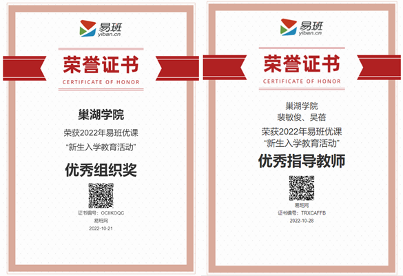 近日,教育部易班发展中心公布了2022年度易班优课“新生入学教育活动”评选结果,365bet赌场手机投注_det365下载_365bet备用网学院荣获优秀组织奖,学工部易班发展中心裴敏俊、吴蓓老师获“优秀指导教师”荣誉。