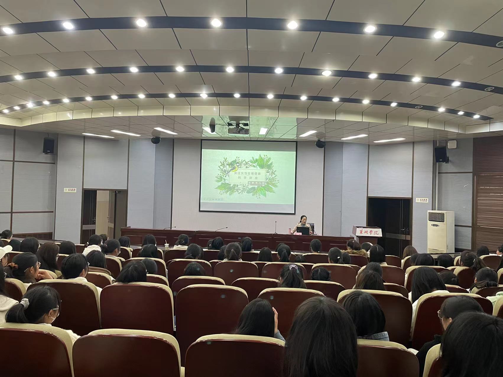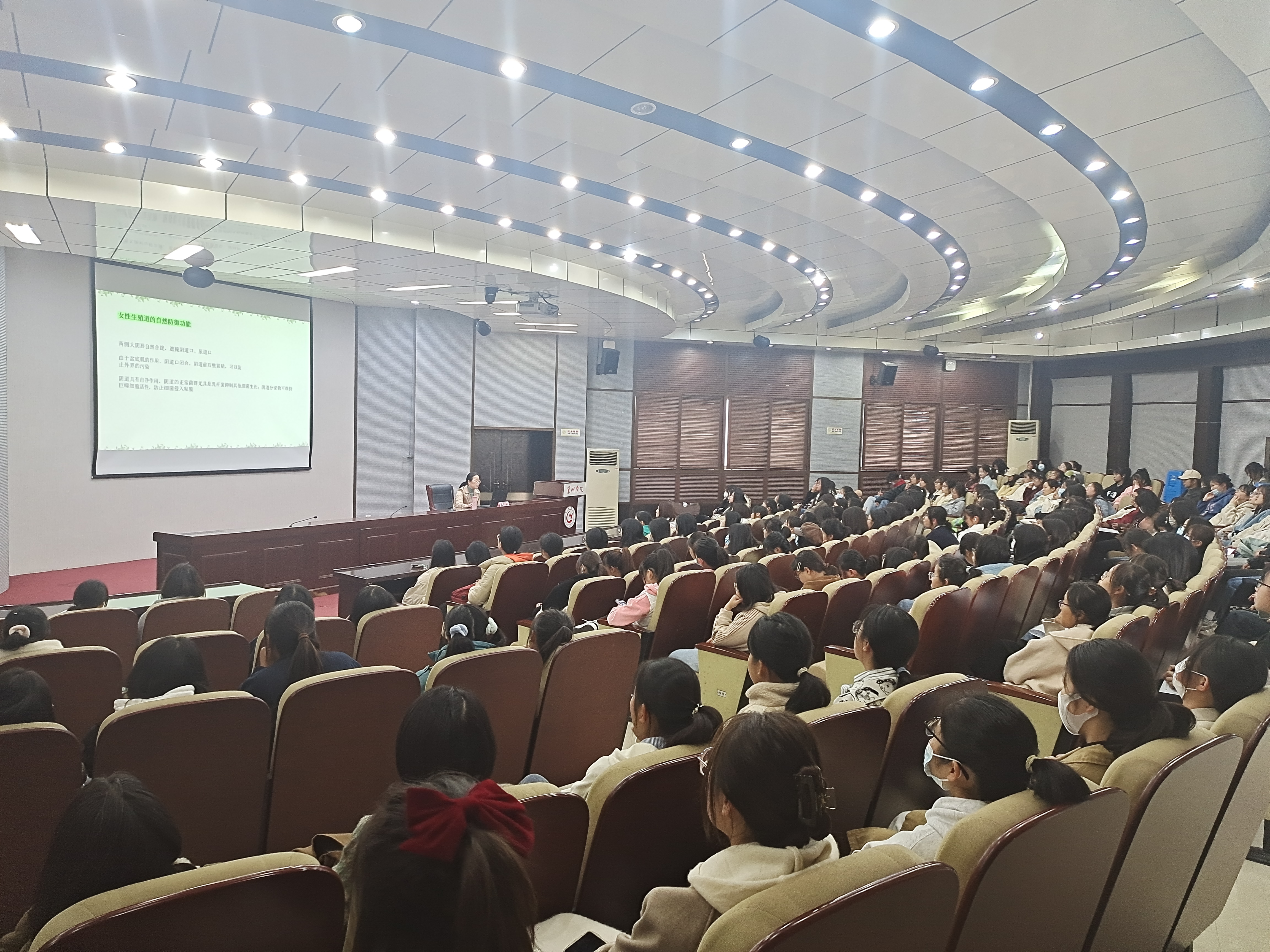 2022年11月16日下午,由学生处、后勤处联合举办的女性健康教育活动第一期、第二期在致知楼报告厅拉开帷幕。本次活动以“关爱女性健康、拥抱美好青春”为主题,以关心关爱在校女生身心健康为目的,以提高大学生综合素养为导向,旨在全力提升学生健康知识及身心健康水平。此次健康教育活动特邀合肥市第八人民医院妇产科主任、主任医师赵玲担任主讲,来自全校的400余名同学聆听了此次讲座。