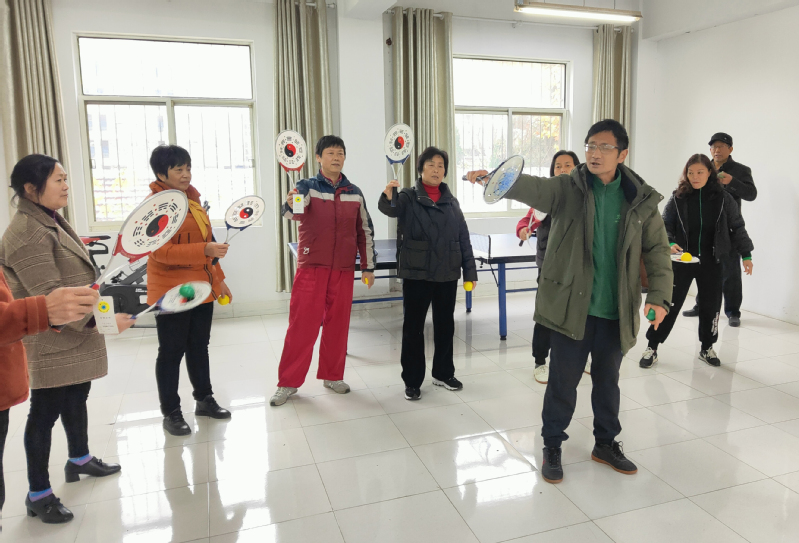 周峰一行还参观了太极柔力球、营养保健、书法绘画等课程授课教室,观摩了太极柔力球授课情况。