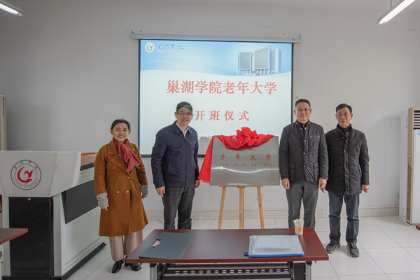 周峰、阮爱民、陈恩虎、汲麓琳共同为365bet赌场手机投注_det365下载_365bet备用网学院老年大学揭牌。