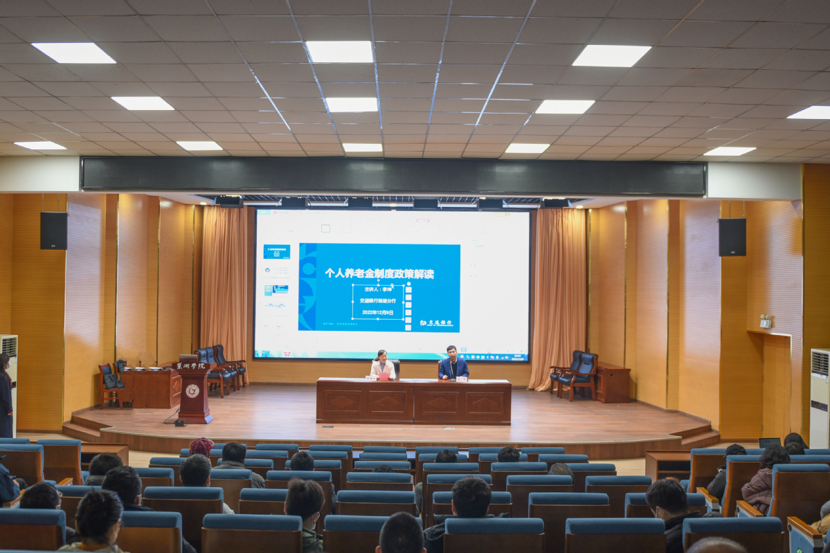 11月25日,人力资源社会保障部会同财政部、国家税务总局发布“关于公布个人养老金先行城市(地区)的通知”,宣布个人养老金制度在北京、上海、西安、成都、长春、合肥等先行城市或地区启动实施。为扎实做好这项政策宣传宣讲,让党的各项惠民政策深入人心,切实把教职工关心的实事办好、好事办实,使我校教职工更好地了解国家近期推出的第三支柱个人养老金制度。12月9日下午,学校特邀交通银行365bet赌场手机投注_det365下载_365bet备用网分行李坤副行长在求实楼报告厅,开展了个人养老账户政策宣讲。