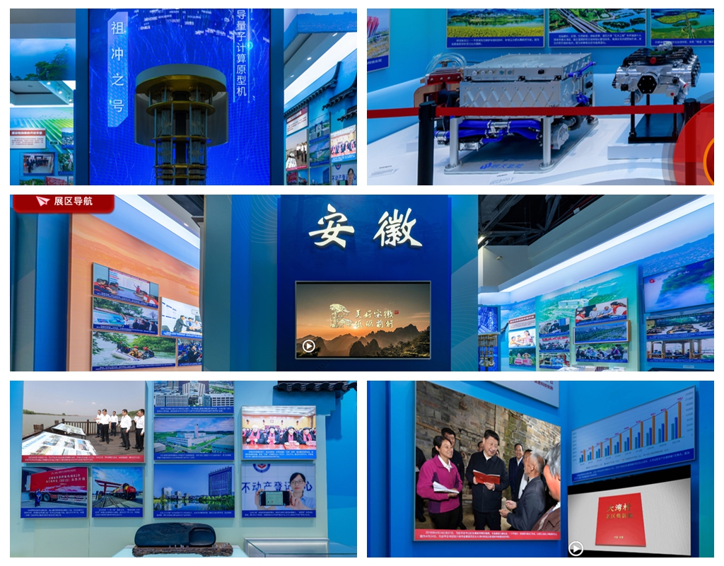 在安徽展区,展览贯穿“学习贯彻习近平总书记重要讲话指示精神”这条主线,聚焦“非凡十年、皖美之变”,综合运用图表图片、电子画屏、灯箱、模型实物、多媒体互动等多种形式,围绕“建设经济强的创新安徽、建设格局新的共进安徽、建设环境优的美丽安徽、建设活力足的开放安徽、建设百姓富的幸福安徽”五个部分全面展开。广大师生深切感受到家乡各行各业、各个地方的改革亮点和发展成果,为各项工作取得的历史性新成就新进展而感到自豪。