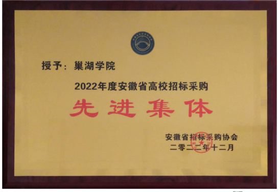 安徽省招标采购协会面向高校开展招标采购评先评优活动,旨在鼓励先进、表彰优秀,激励高校采购单位及从业人员创先争优。我校获此殊荣,是对我校2022年度招标采购工作的认可和肯定,也是对相关工作人员辛勤努力的褒奖。