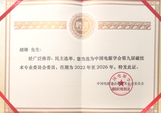 全国磁标委编号TC89,由工业和信息化部筹建并进行业务指导。现任主任委员崔莹,副主任委员赵光、周少雄、何震宇,秘书长张芦。负责全国磁性元件(包括铁氧体磁心、卷绕铁心、叠片铁心、线圈、电感器、电子变压器、微波铁氧体器件、永磁元器件等)与铁氧体材料(包括软磁、永磁、旋磁、矩磁、压磁等)等专业领域的标准化工作。此前,胡锋博士于2022年9月当选中国电源学会第九届磁技术专委会委员。