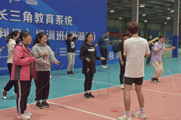 本次培训运动旨在贯彻全民健身国家战略,推动群众体育蓬勃发展,提升全民健身公共服务水平。在高质量办班理念指引下,以体教融合为契机,针对跳绳项目现状、发展情况及竞赛规则,全国跳绳初级教练员考核标准学习,速度跳的基本技术与训练方法,跳绳游戏创编和设计,全国少儿跳绳示范套路培训、音乐跳绳操教学等开展2天16个理论和实践学时的系统学习,为推进长三角教育系统跳绳运动的普及与开展提供了良好的师资保障。(文/杜锐 图/黄子健、刘建文 部门审核/张道才 终审/张连福)