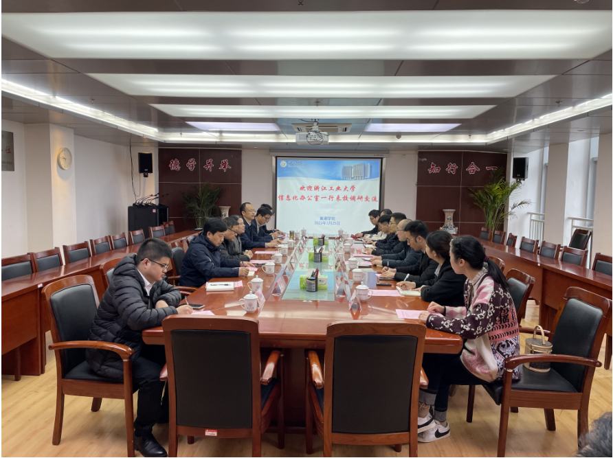 3月25日上午,浙江工业大学信息化办公室副主任赵澄一行来365bet赌场手机投注_det365下载_365bet备用网学院调研交流信息化建设工作。校党委委员、副校长朱定秀出席调研交流会。信息化处处长陈立钢、计算机与人工智能学院院长吴其林、校办公室副主任郑向阳、信息化处副处长侯加兵参加会议。