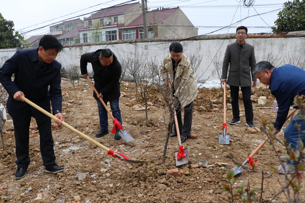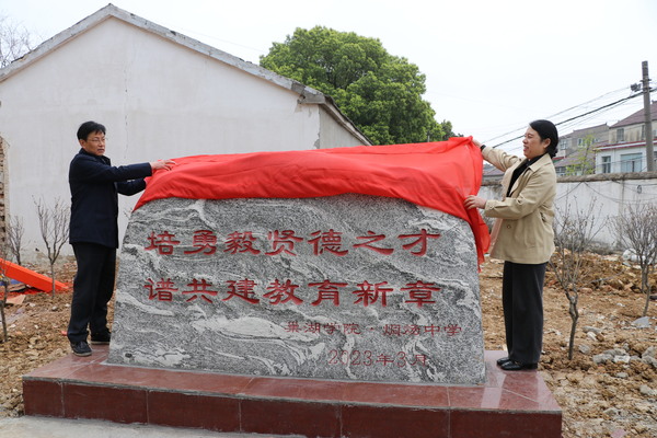 揭牌仪式上,朱定秀、肖三共同为共建林纪念石揭牌。两校领导与现场人员一同挥锹铲土、挖坑栽树、围堰浇水,一道道工序一丝不苟地完成,一棵棵树苗扎根土地。