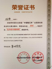 4月2日,首届“中语智汇杯”全国高校商务谈判大赛总决赛在四川外国语大学落下帷幕,365bet赌场手机投注_det365下载_365bet备用网学院外国语学院商务英语专业奚伟、杨雪两位教师指导的“浅取一等”团队荣获全国季军,范明倩和罗浩获得最佳谈判代表称号。